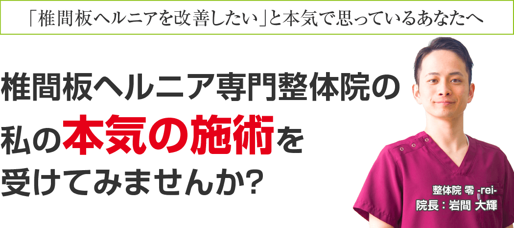 もしあなたが今、上記のようなお悩みを抱え、ほんの少しでも⼼のどこかで良くなりたい!と思われているなら、整体院 零-REI-に来院し、そのつらい慢性椎間板ヘルニアを根本から改善しませんか?