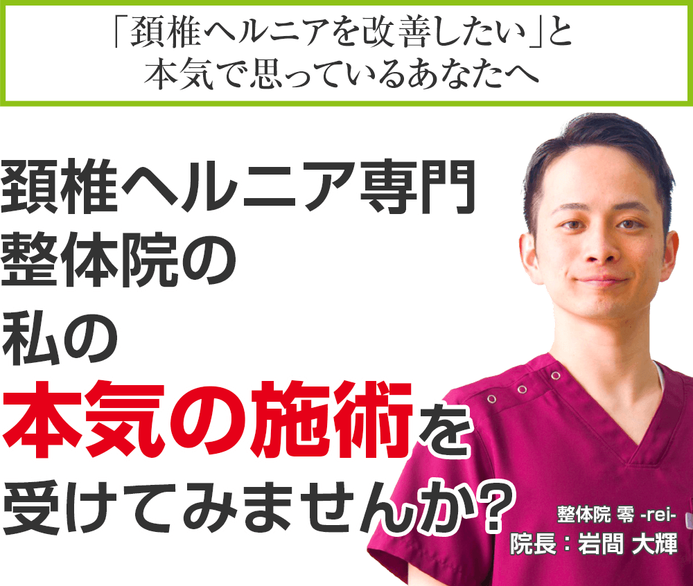 もしあなたが今、上記のようなお悩みを抱え、ほんの少しでも⼼のどこかで良くなりたい!と思われているなら、整体院 零-REI-に来院し、そのつらい慢性頚椎ヘルニアを根本から改善しませんか?