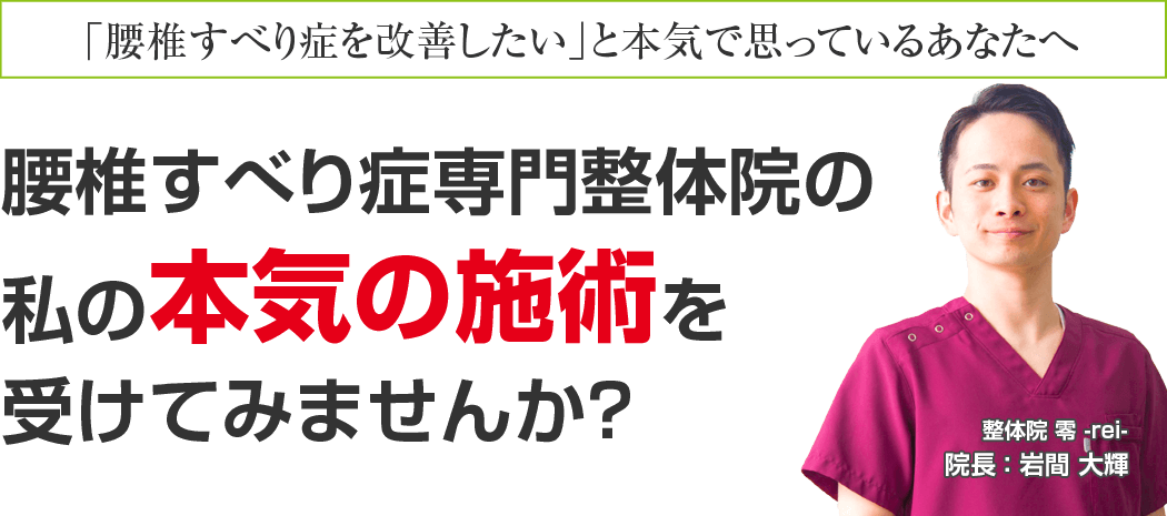 もしあなたが今、上記のようなお悩みを抱え、ほんの少しでも⼼のどこかで良くなりたい!と思われているなら、整体院 零-REI-に来院し、そのつらい慢性腰椎すべり症を根本から改善しませんか?
